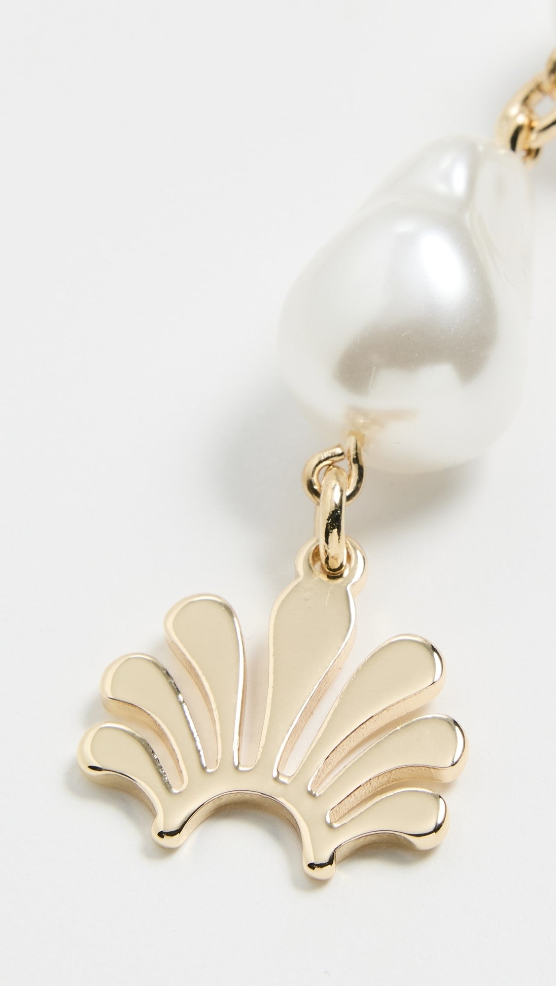 Lele Sadoughi's chain style belt with double pearl strand in front, floral charm accents and fish hook clasp closure. Adjustable chain.
