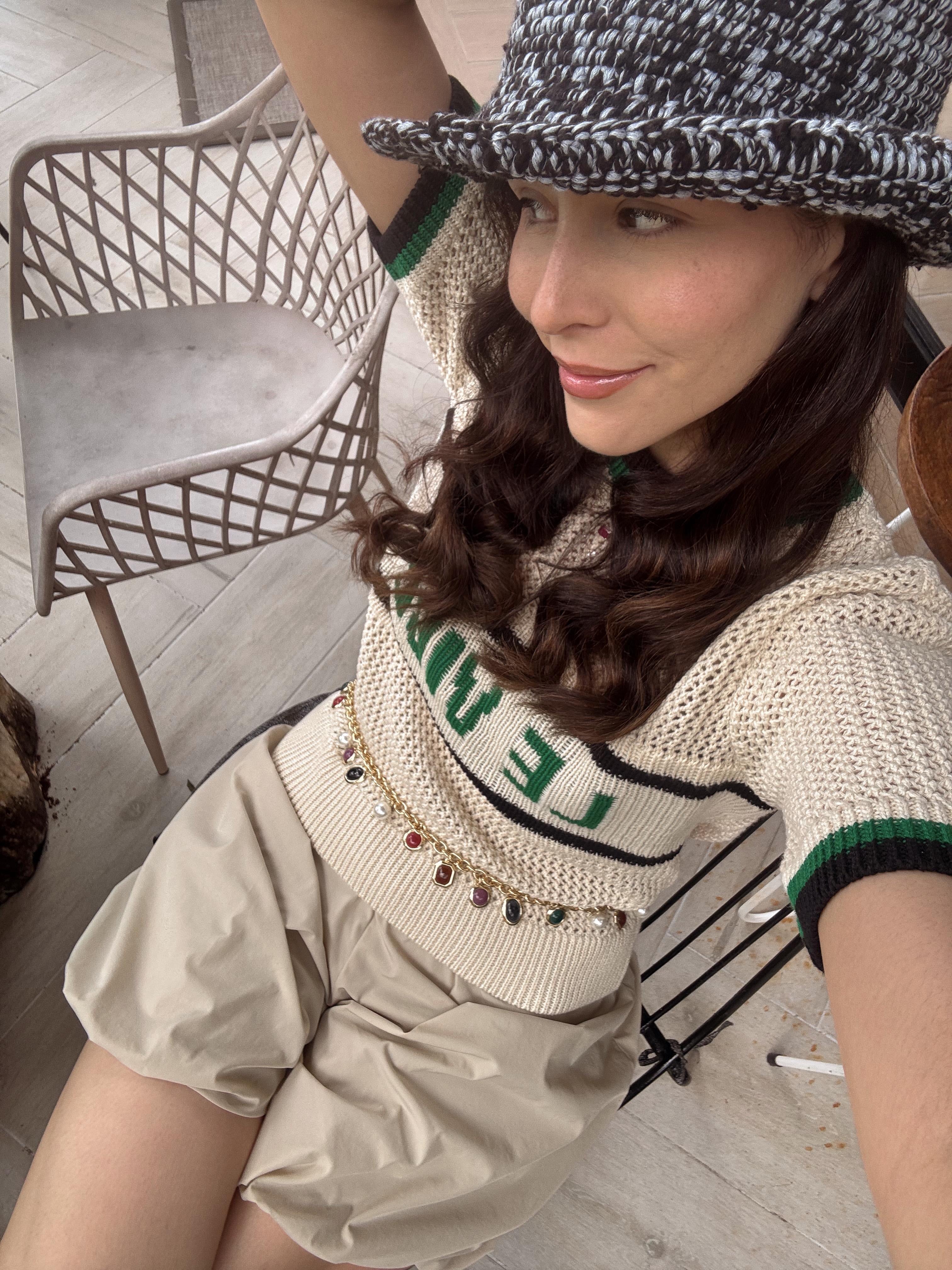 A colorful take on our classic charm belt, featuring pearls and the signature bezel set stones in Earth tones.