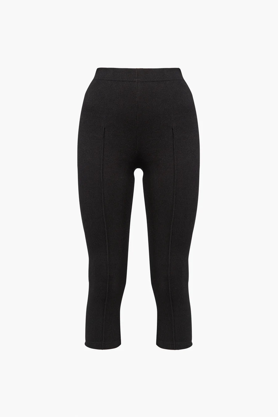 These capri leggings are crafted from a soft stretch-cotton jersey with a ribbed texture, offering a comfortable, form-fitting fit. The elasticated high waistband ensures a secure fit, while the front stitches add a subtle design detail. Ideal choice for both leisure and performance wear.