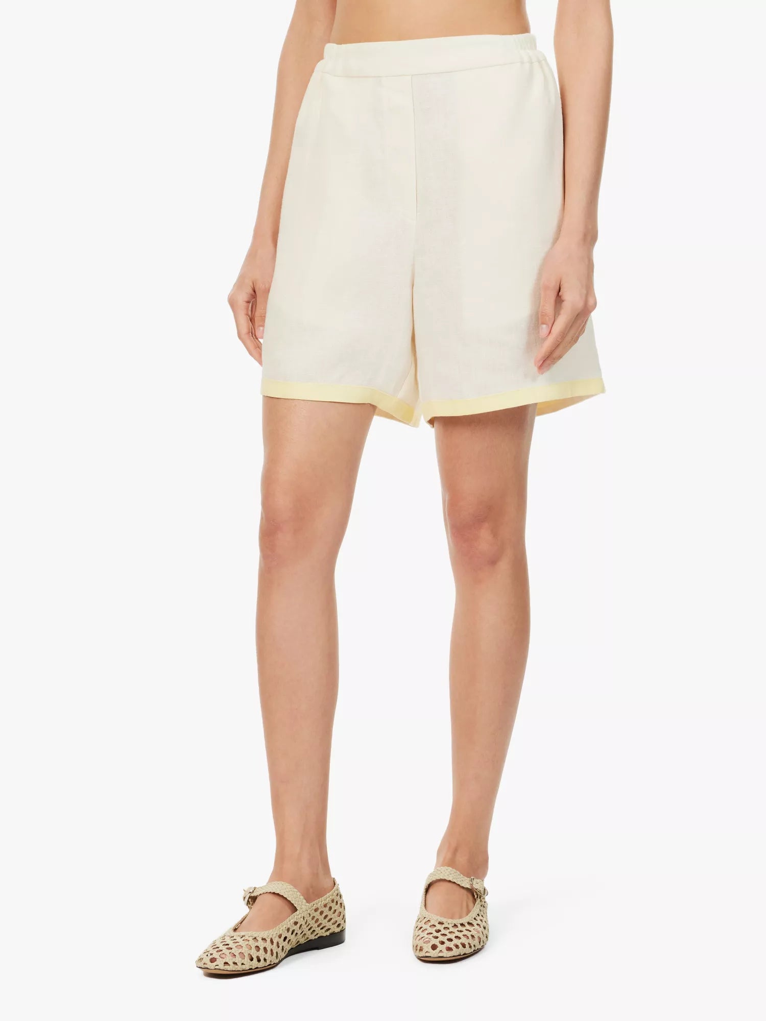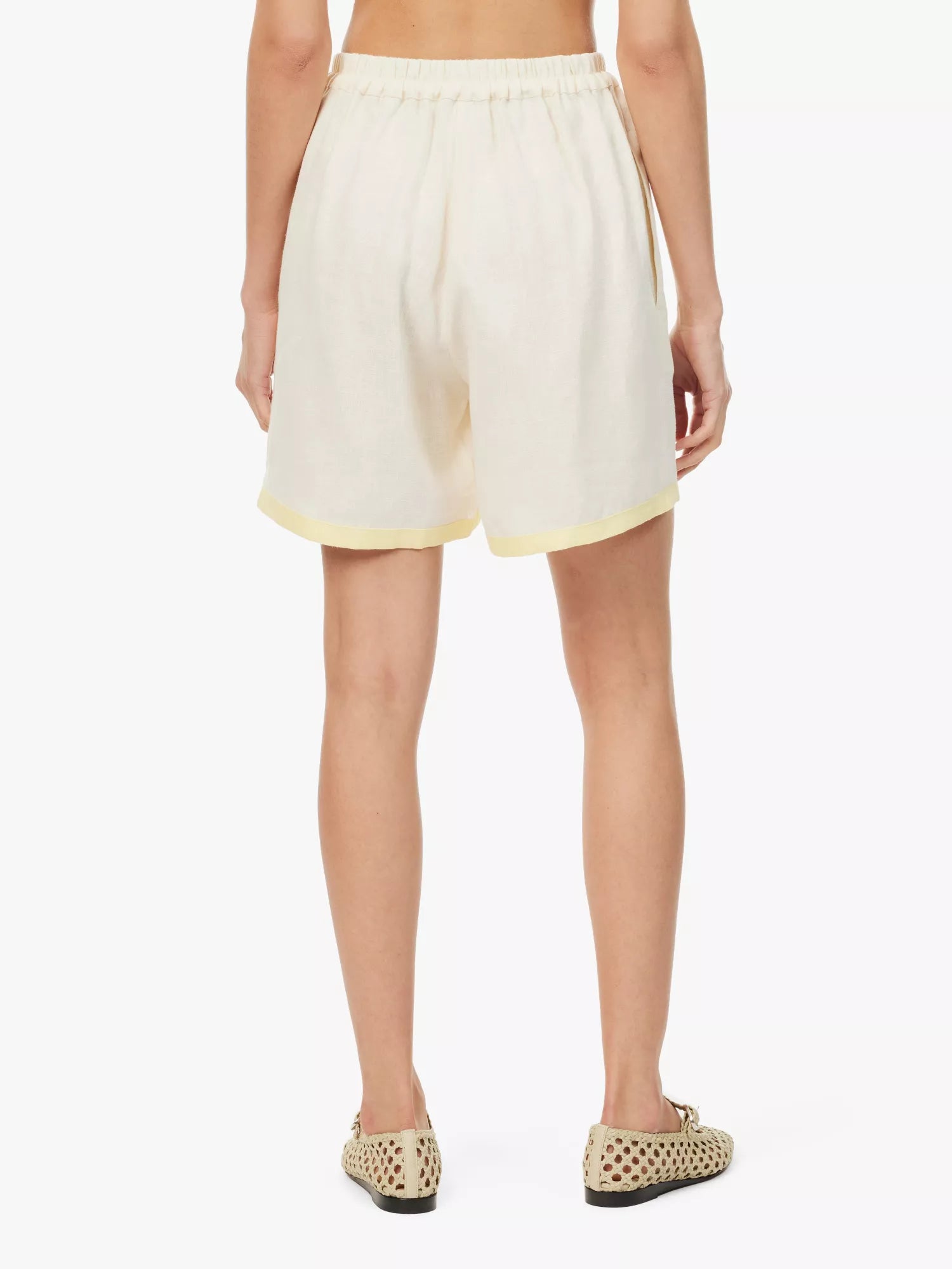 Relaxed shorts in airy linen with a contrast trim. The wide cut features side seam pockets and a high elasticated waist for a comfortable fit. Wear them with the Garrick Linen Shirt as a refined lounge and daywear set.