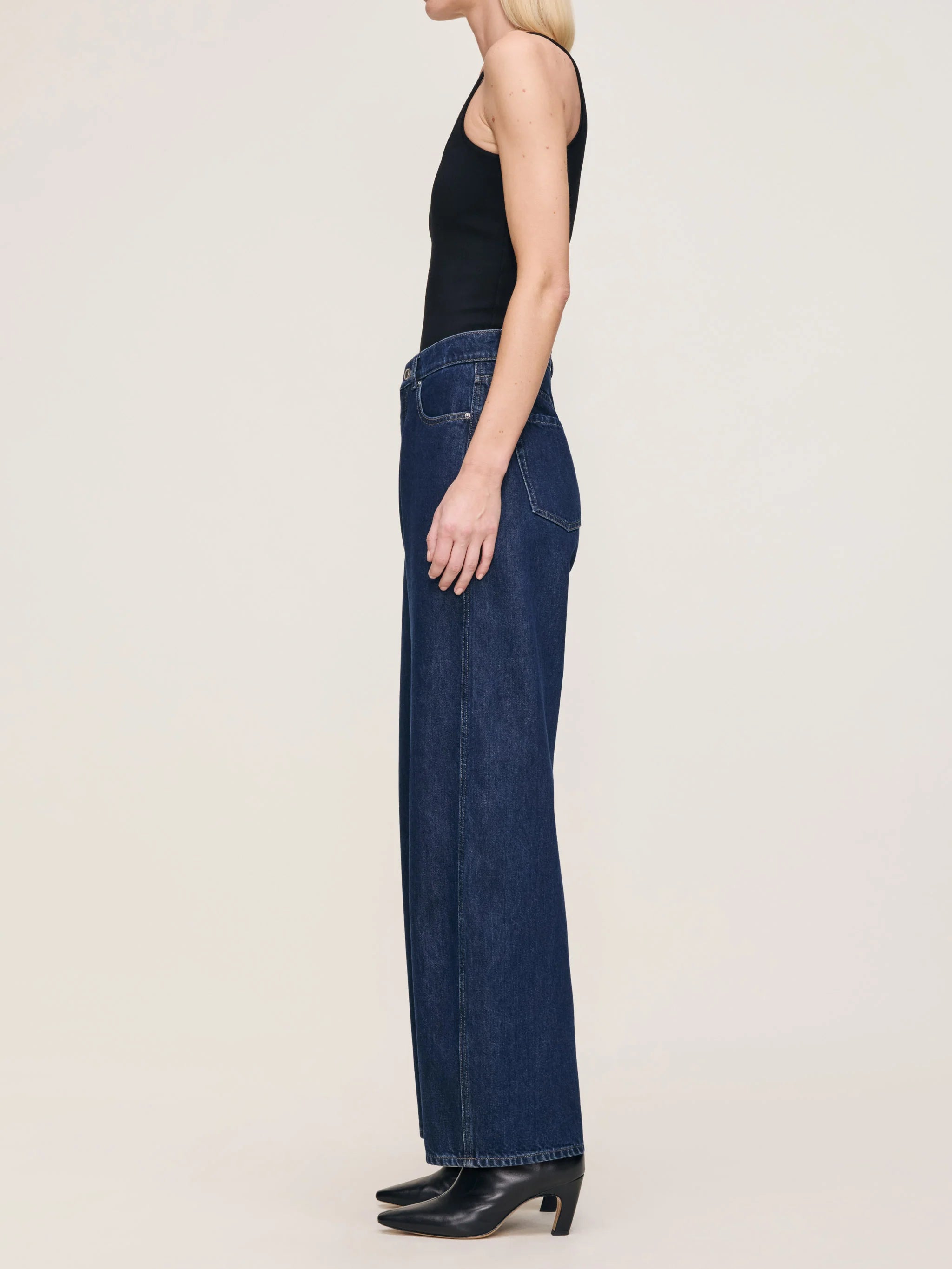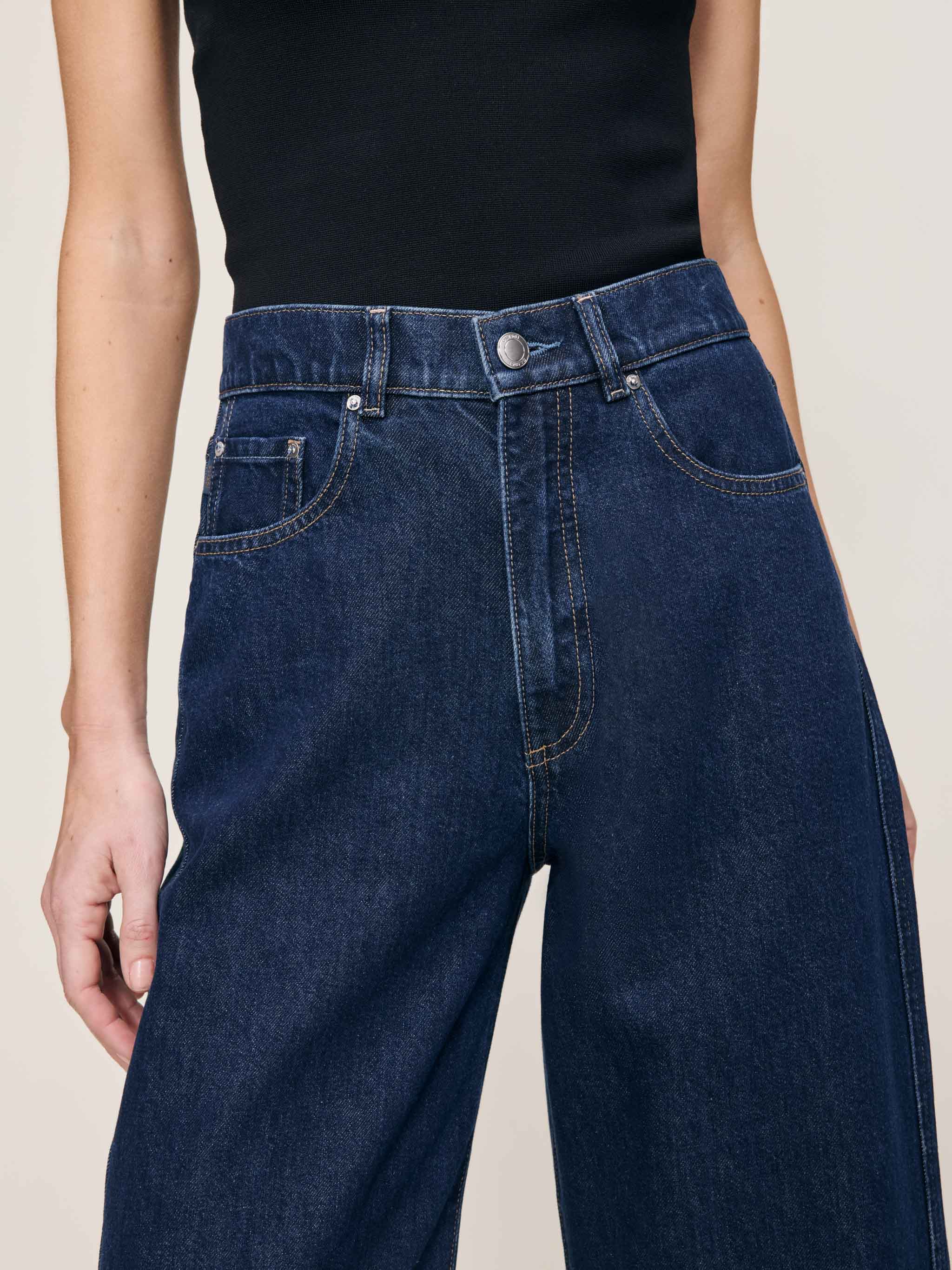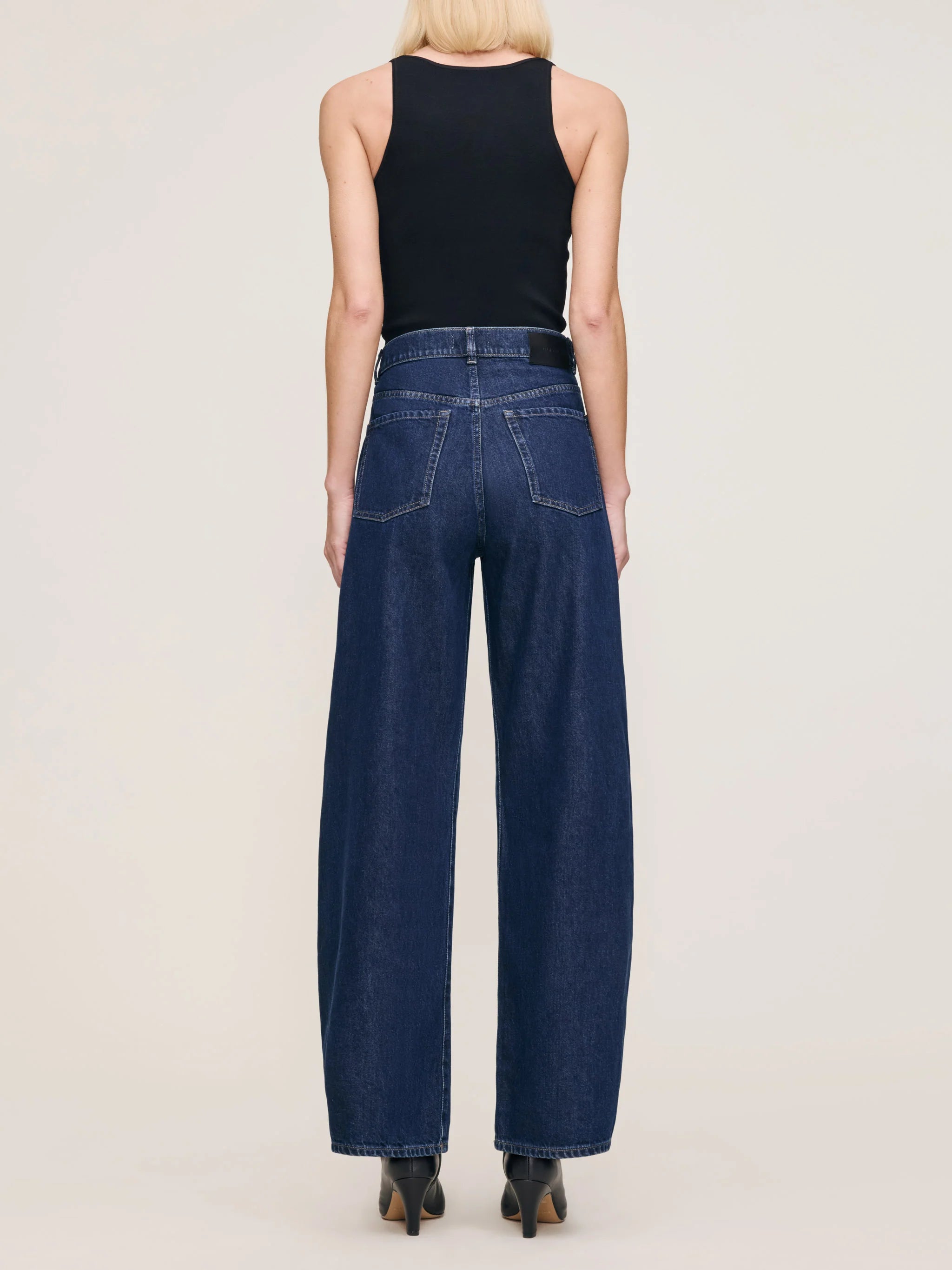 Taylor is a high rise fit with a relaxed barrel leg for an everyday, laid-back look. Lake House is a rich indigo denim. It features silver hardware, khaki stitching, a clean hem and a black back patch.