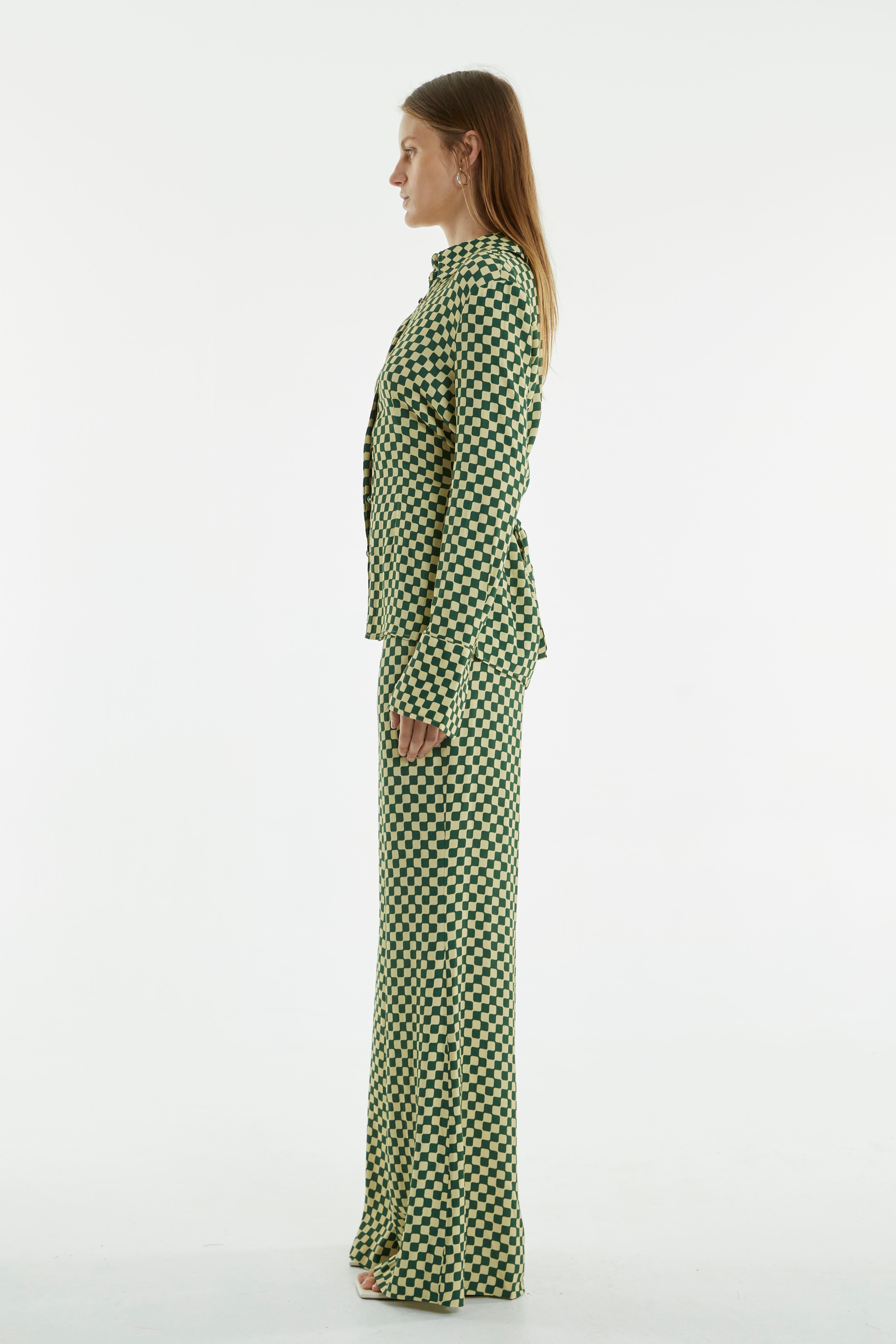 Make a statement with our Retrospect Trousers in an exclusive THIRD FORM cubism print. These full-length flare trousers are cut on the straight grain and feature a silver metal exposure side zipper for added flair. Thoughtfully crafted from EcoVero™ Lenzing and adorned with our exclusive in-house designed print, these high-waisted trousers blend style with sustainability. Pair with the Retrospect Shirt for an impactful matching set.