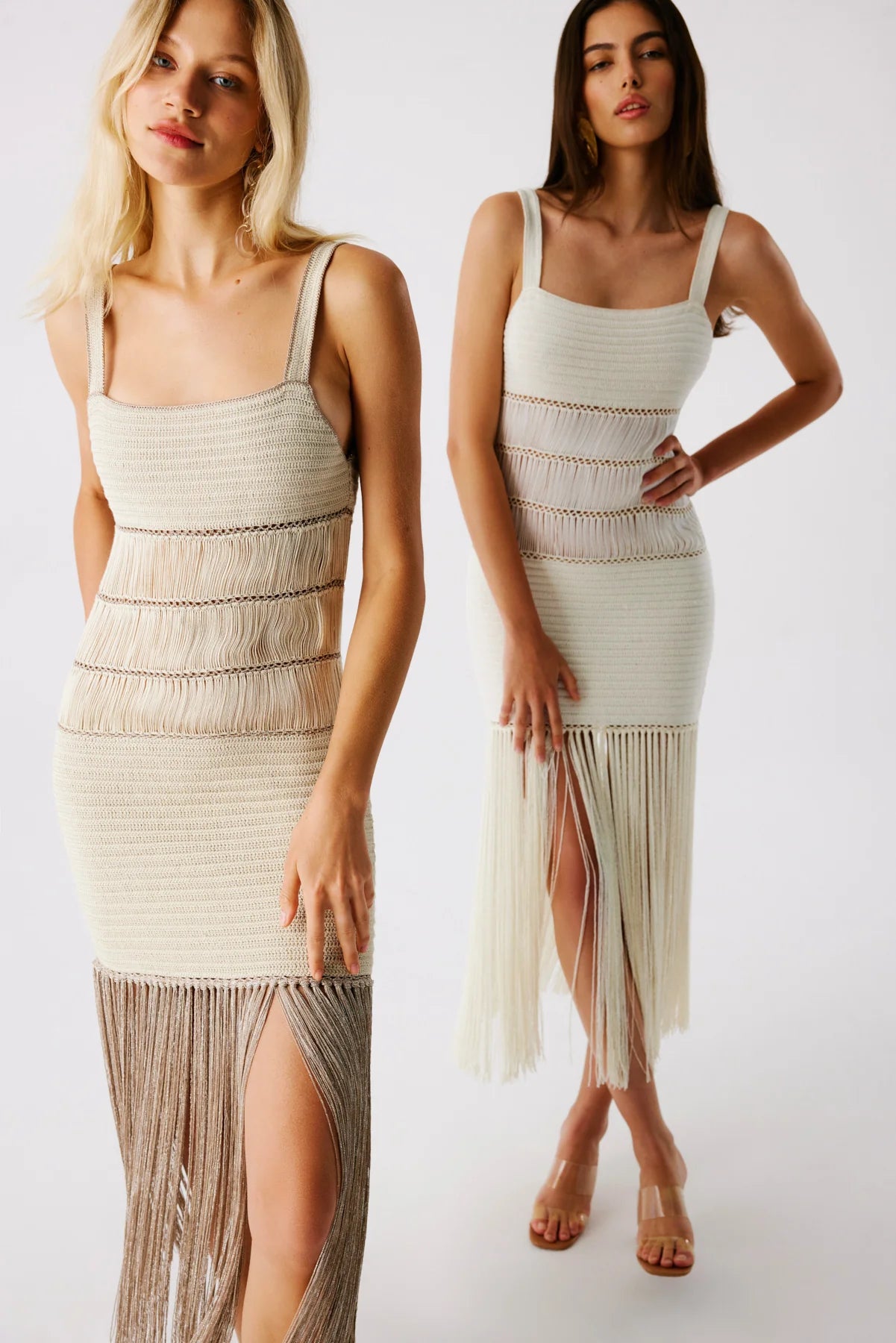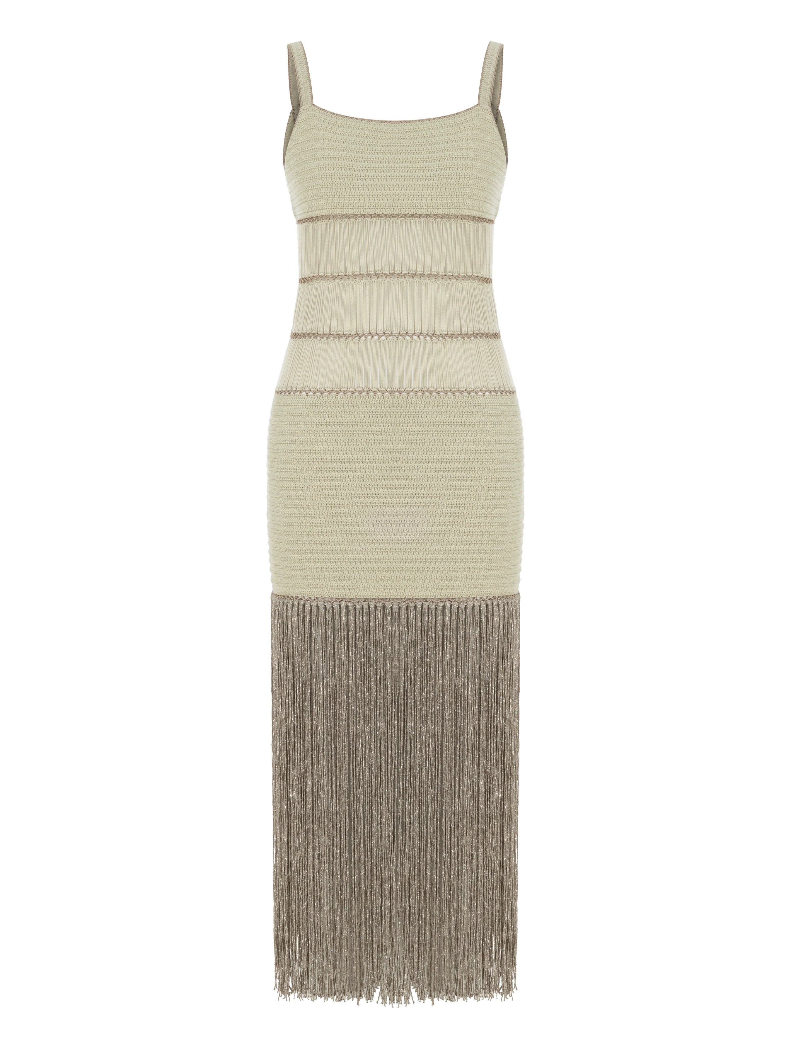 • Bronze Bonbon Hand-Crocheted Fringe Maxi Dress