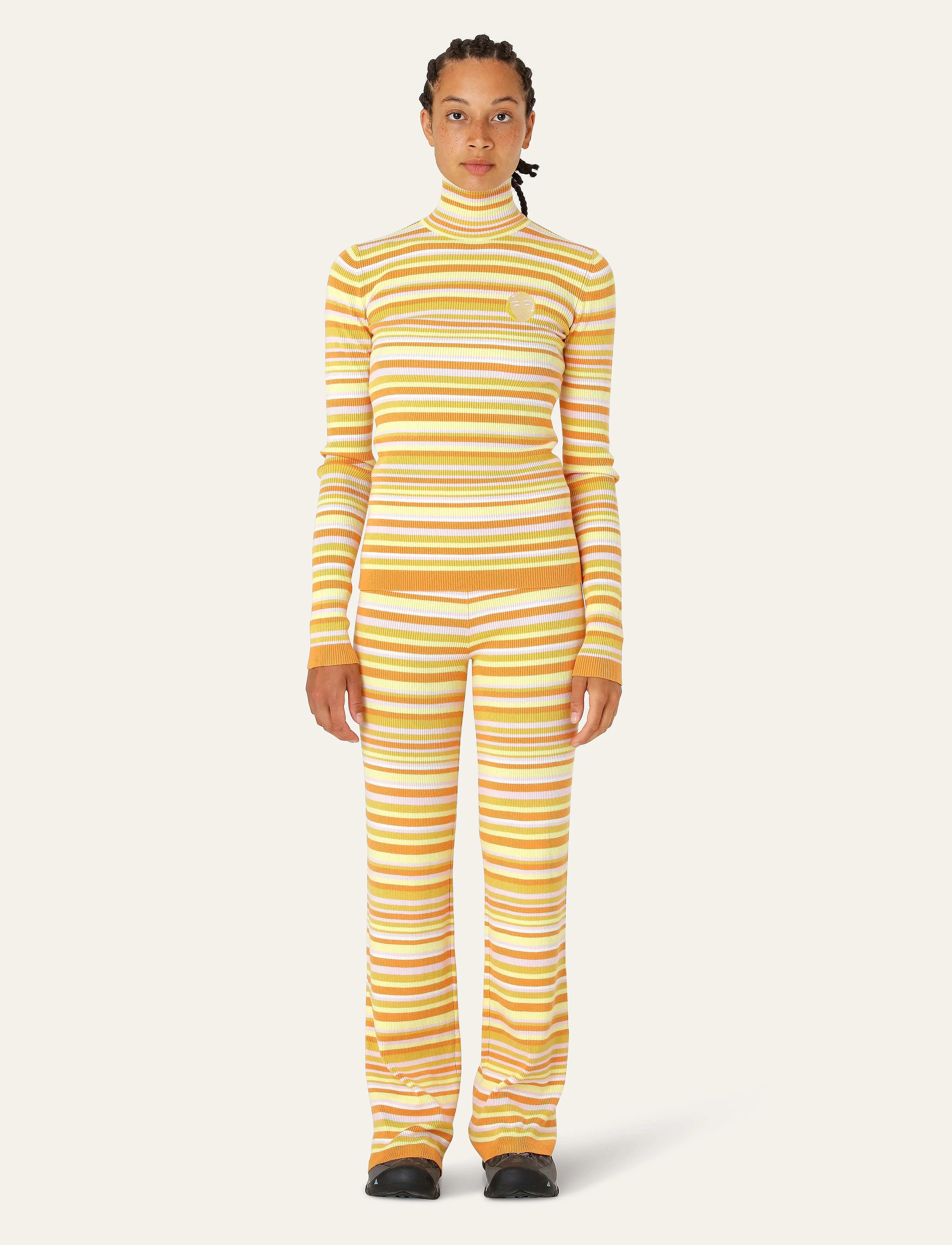 Helmstedt's Awa Top is a ribbed turtleneck and patterned sweater that has an embroidered plaque at the chest. It's cut for a slim fit and works equally well with jeans or with the matching Awa Pants for a cool, coordinated, and cozy ensemble.
