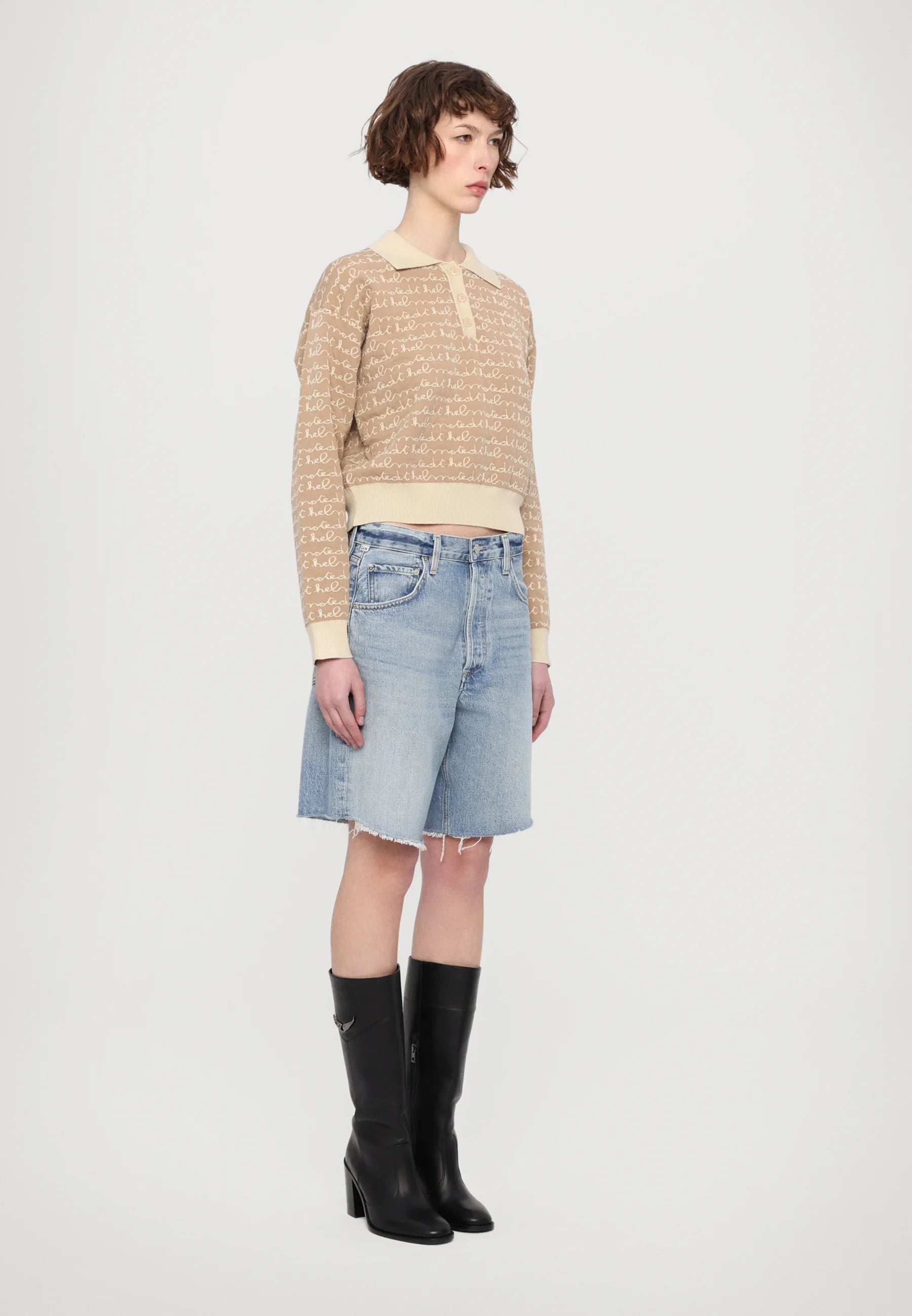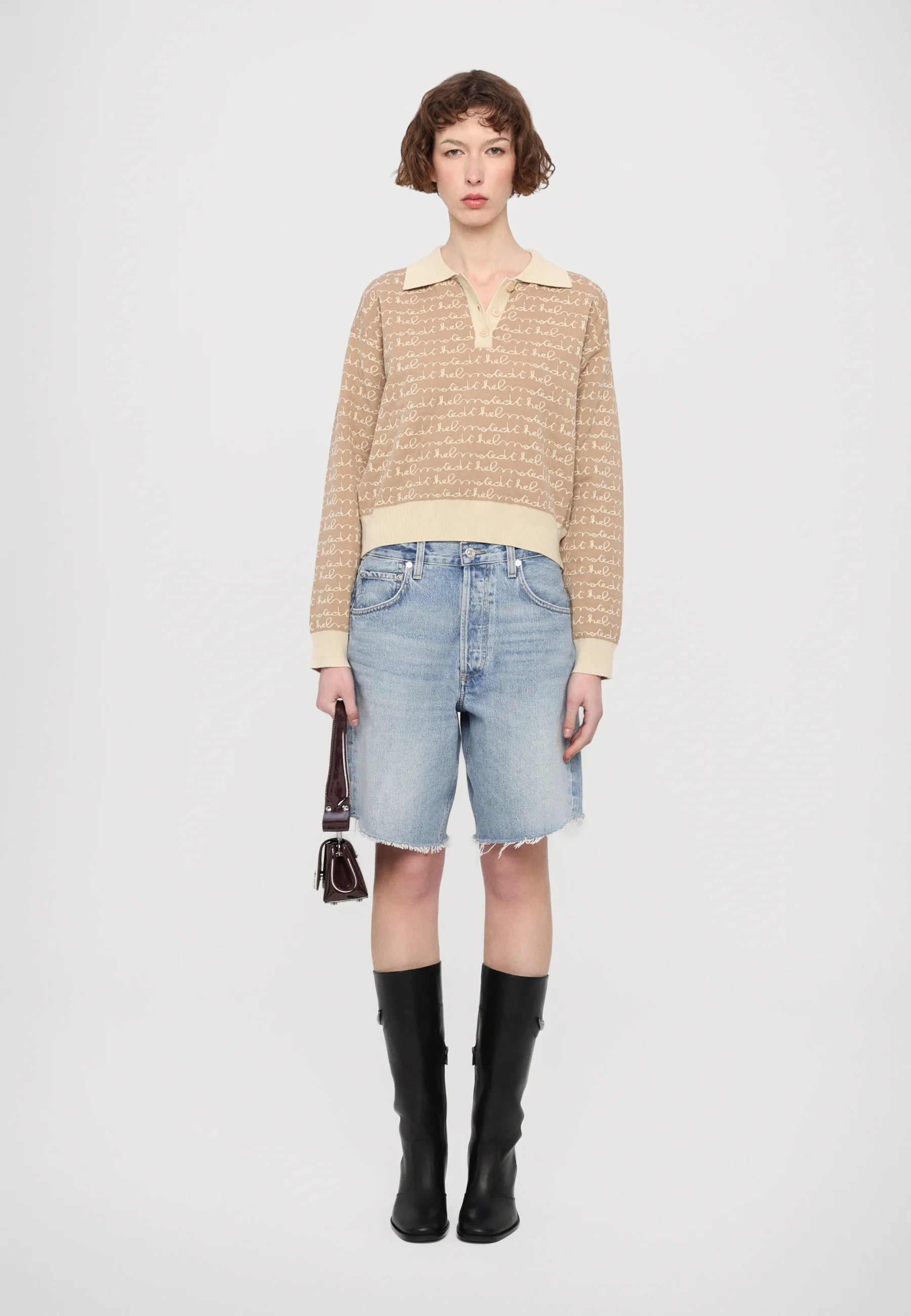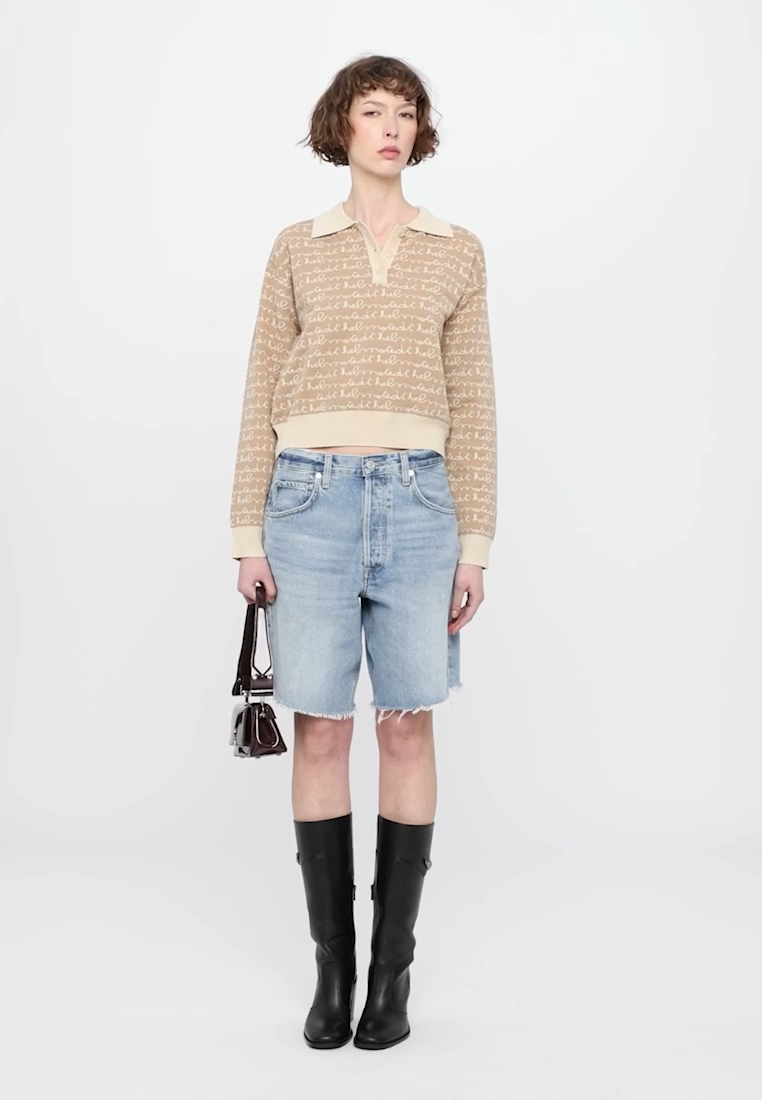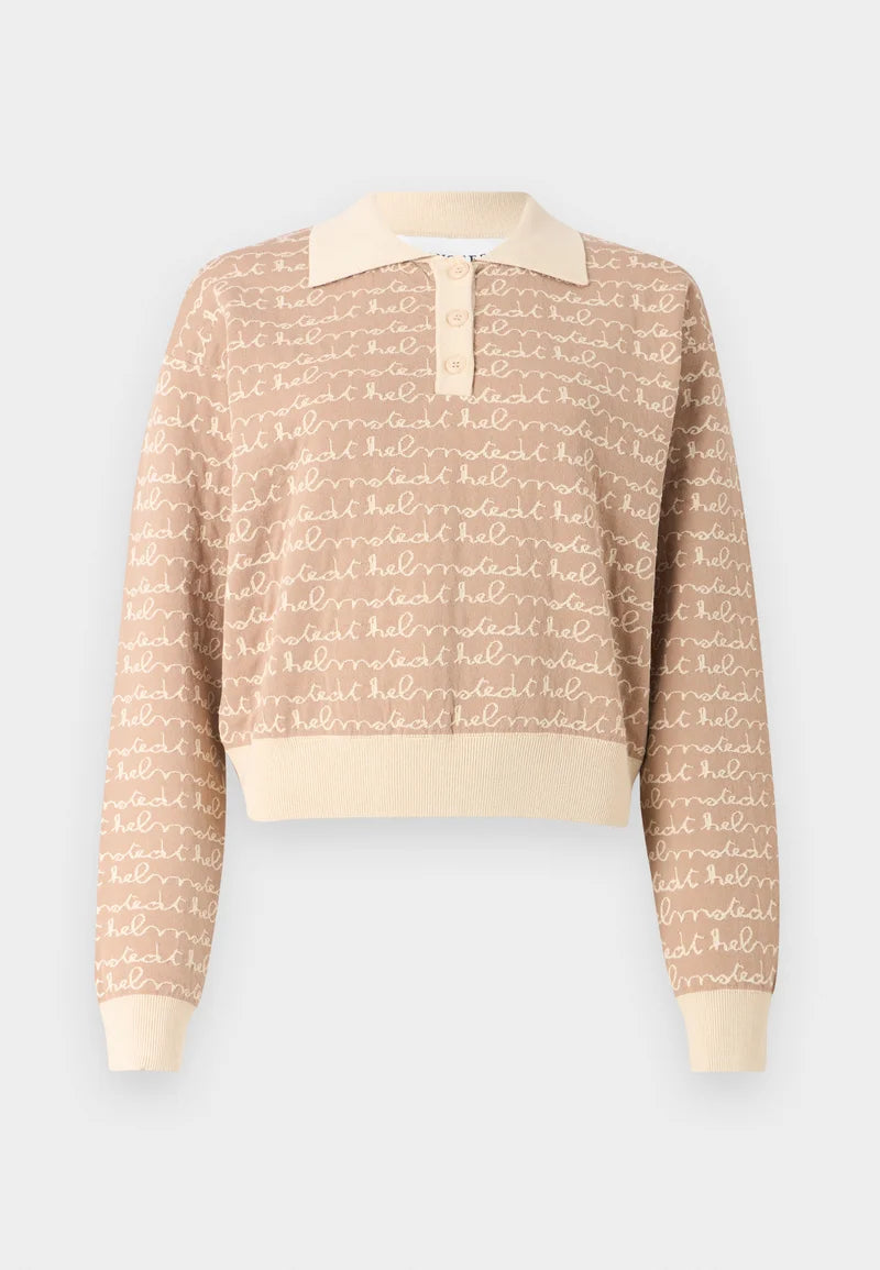 Jacquard knitted sweatshirt with elastic in the waist. The knit is with all-over Helmstedt logo. The sweatshirt have a relaxed fit, which make it the perfect fit for a cozy day or for the person on-the-go.