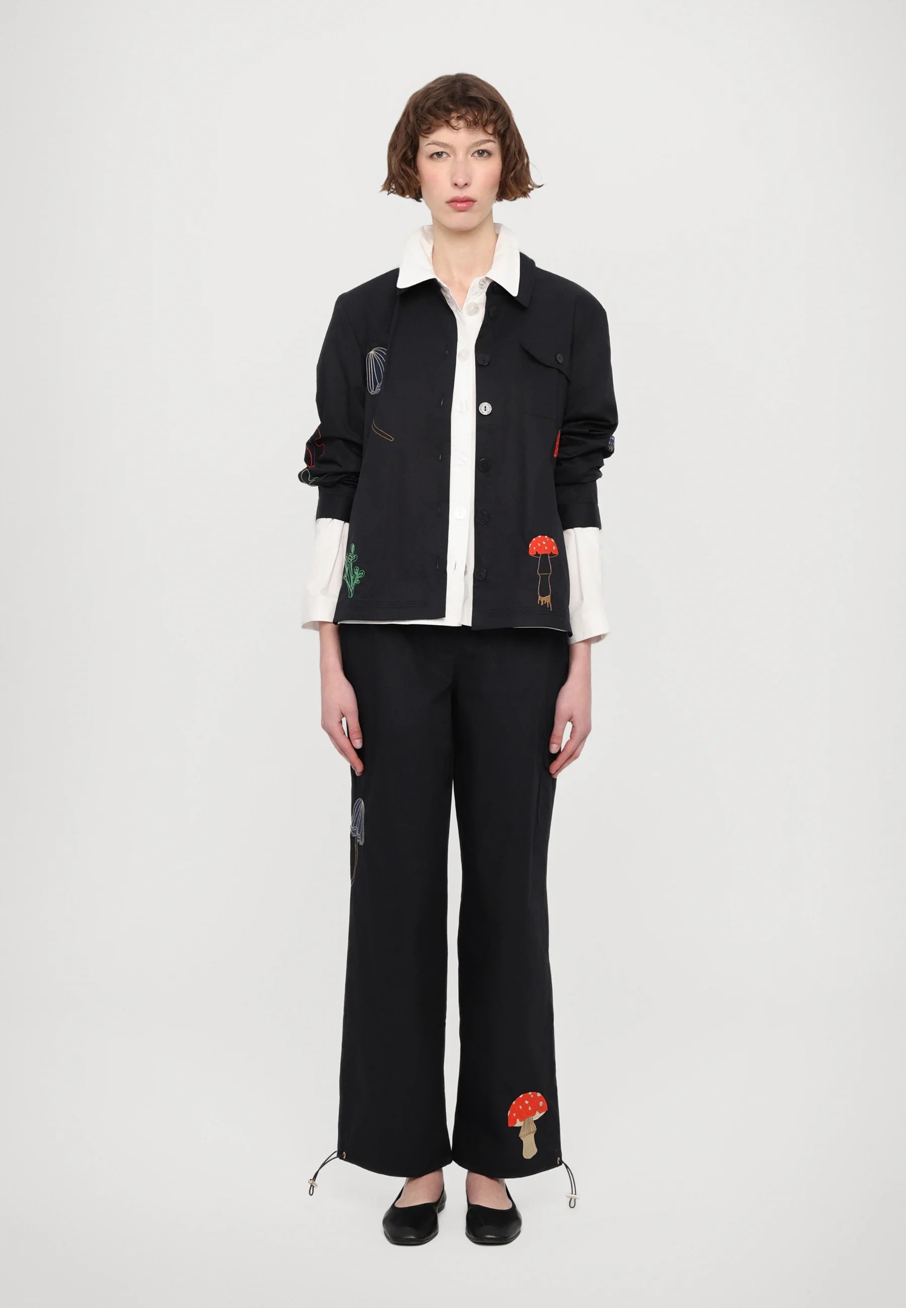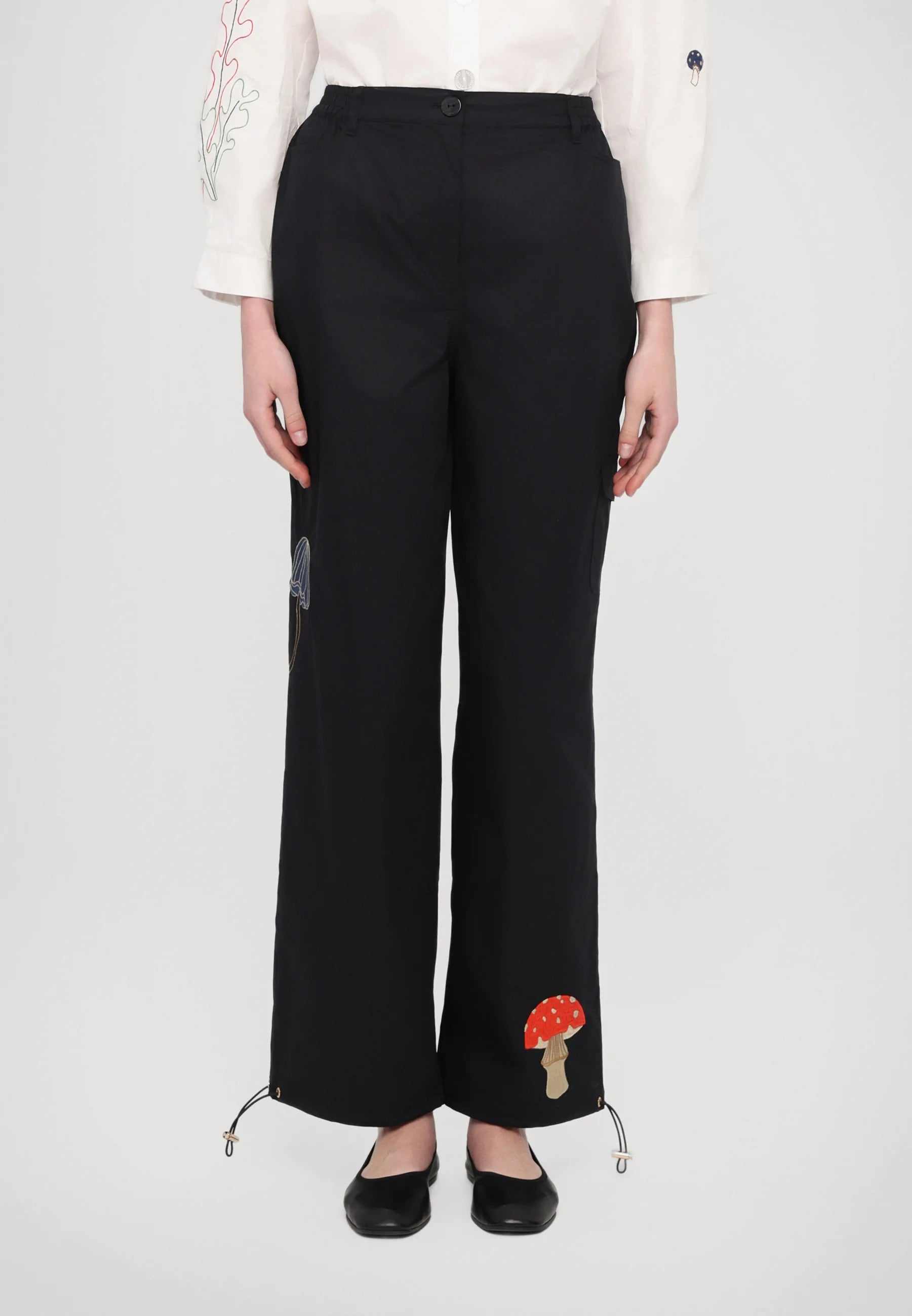 The Karla Pants have a relaxed fit and have elastic at the ankles with cord-locks, that give you the opportunity to adjust the pants the way you want. Closes at the front with a zipper and button. All over the pants you will find embroidered motifs in a lot of different colors. Style them with the Karla Shirt for a coordinated look!