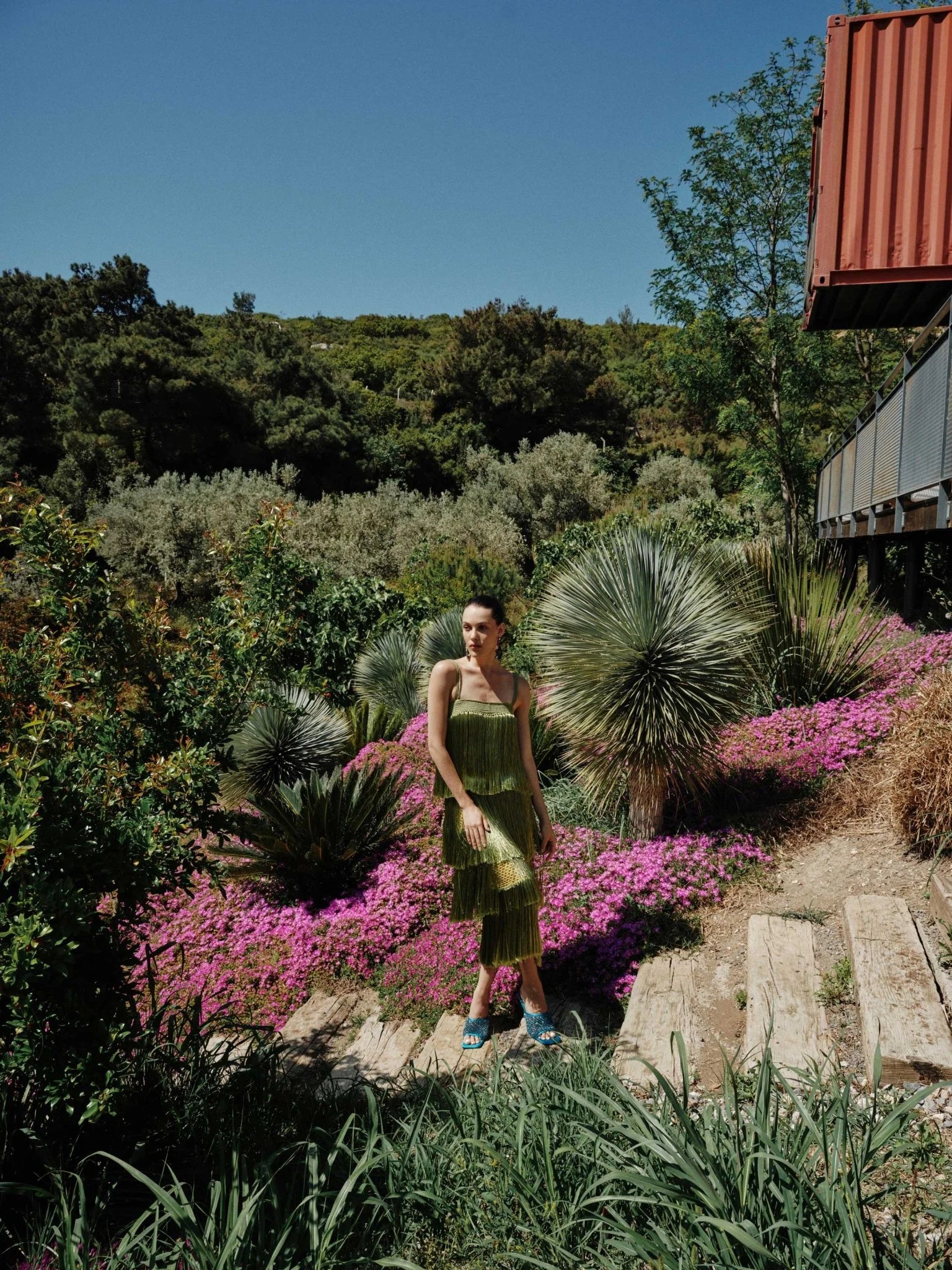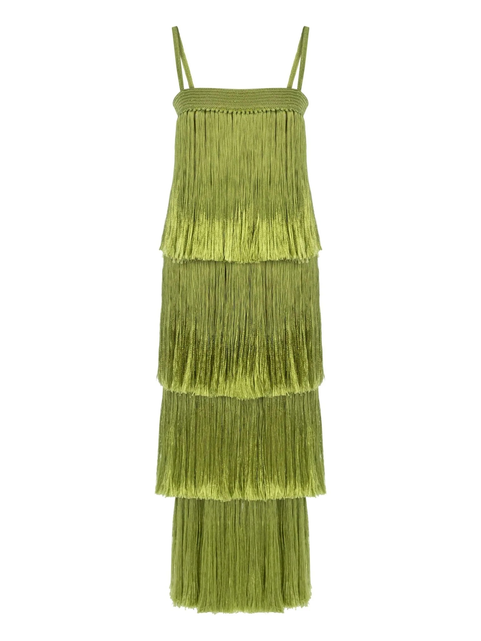 This sustainable style is the perfect blend of beachy boho chic with effortless, stand out glam. Tiers of silky fringe make up this stunning maxi dress, with an elastic band at the top and spaghetti straps that can be worn in or out. Grab some strappy shoes and a clutch for the easiest luxe look ever!