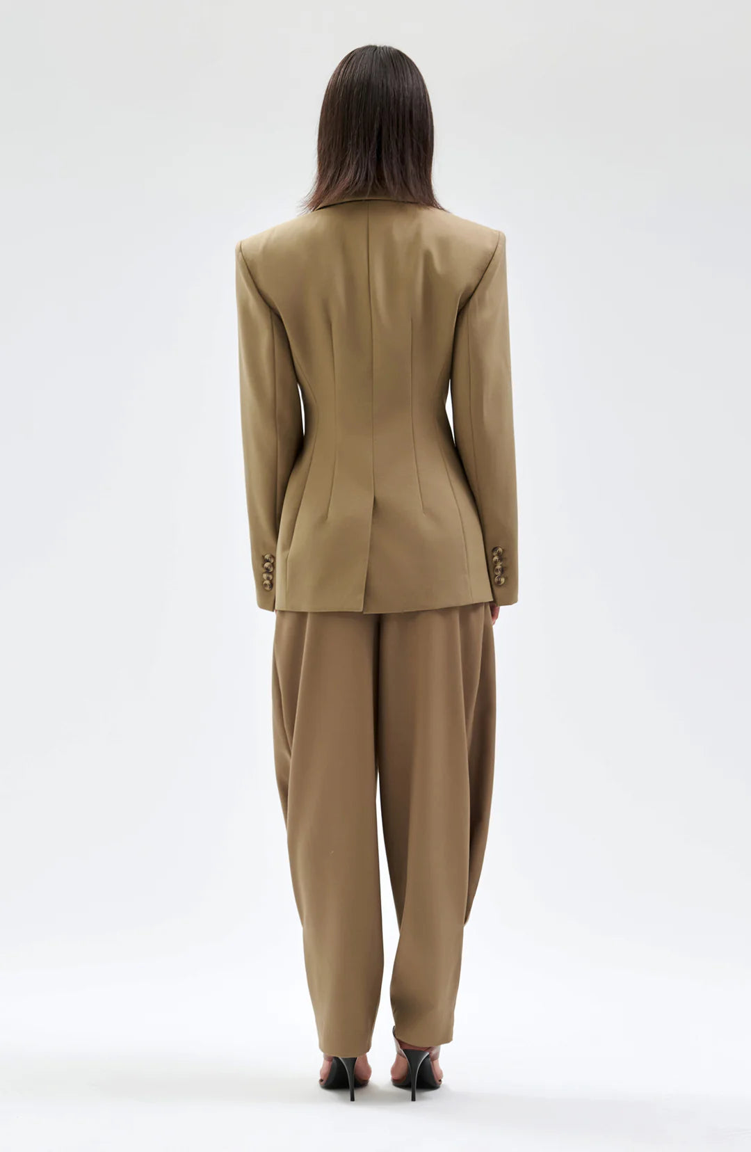Sand-colored linen lends an effortless feel to these high-waisted trousers. A fluid, relaxed shape enhances movement, while crisp tailoring ensures a refined finish. Style it with the Kylar Jacket for a complete suited look.