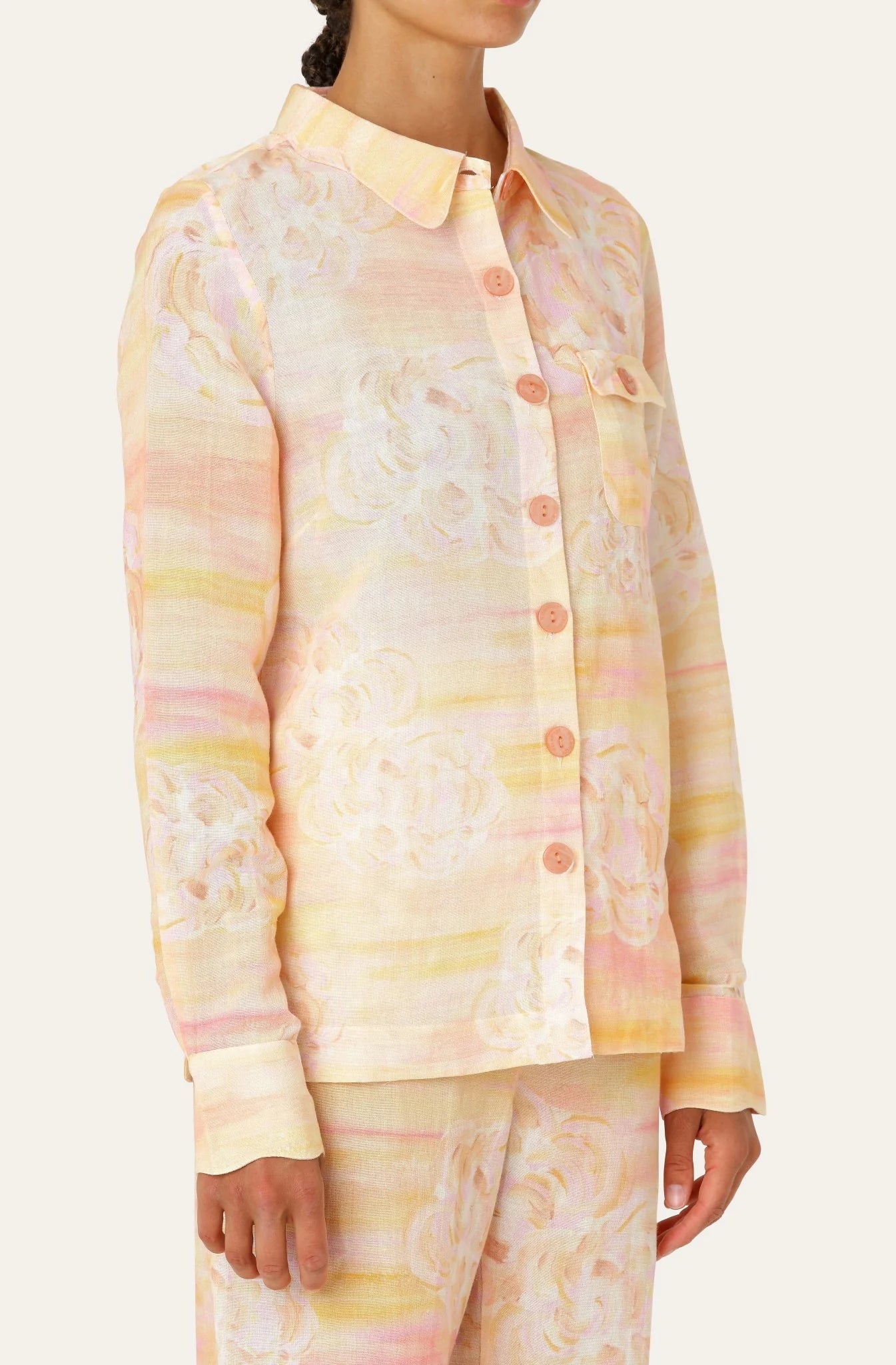 The Alv Top is a stylish and comfortable shirt with a classic design. It features a button-up closure, a chest pocket, and long sleeves. The shirt is made from a soft and breathable fabric, making it perfect for everyday wear. Wear it with the matching Alv Pants for a dreamy look.