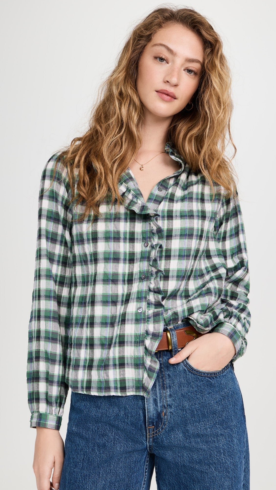 The Nicholson Shirt by XÍRENA blends classic tailoring with feminine flair. Crafted in a lightweight, non-stretch plaid weave, this collared button-down features long sleeves with button cuffs and delicate ruffle detailing at the edges. Made from a soft cotton blend with a touch of stretch, it offers effortless comfort and a flattering fit. Length measures approximately 22.75" from the shoulder.