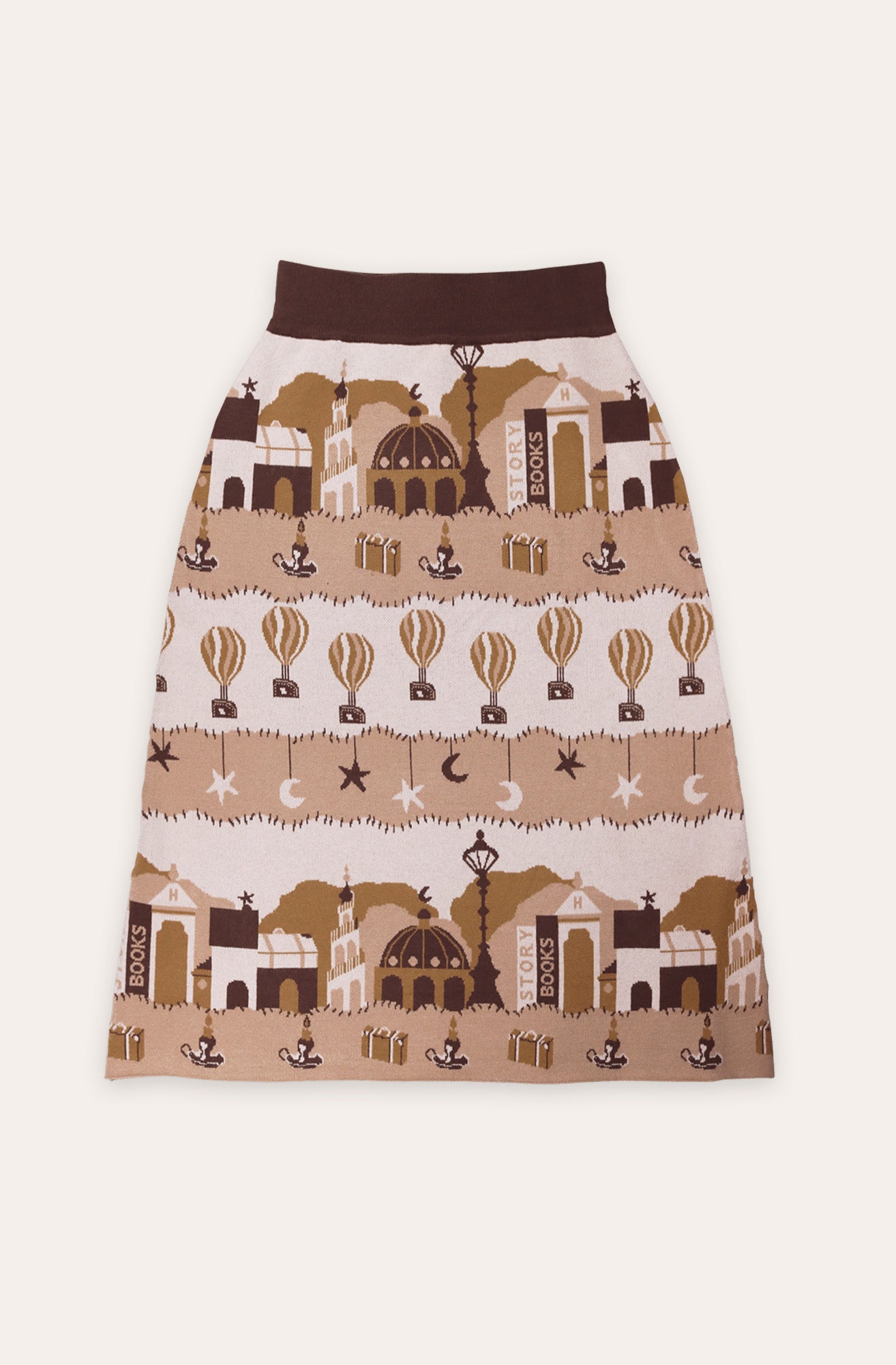Hot air balloons, story books, stars and moons: who wouldn't want this print on their body? The Ami Skirt by Helmstedt is an A-line jacquard knitted skirt with a detailed night time print fit with an elastic waistband. A beautiful knit set that is extremely comfortable and great to style up or down. Style the Ami Skirt with the matching Ami Vest for a cute coordinated look.
