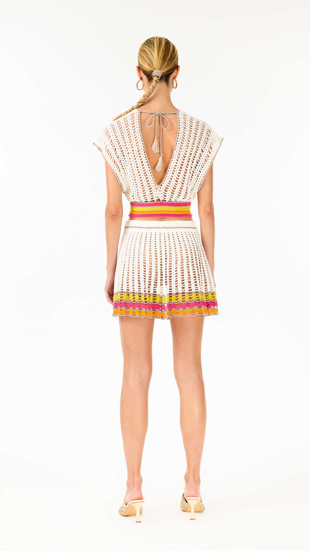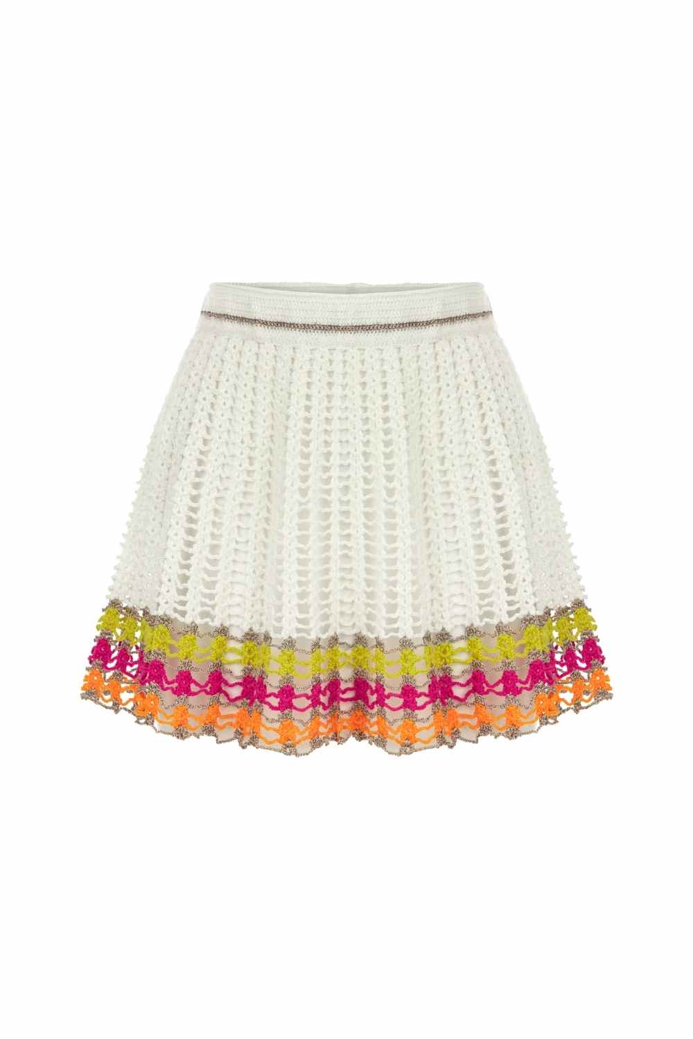 The hand-crocheted design of this mini skirt blends bohemian charm with artisanal craftsmanship. Each stitch is thoughtfully woven, creating a playful texture that adds a touch of whimsy to your ensemble. Wear it with the matching Lollipop Top for a carefree day look, or elevate it with a chic blouse for a night of celebration.