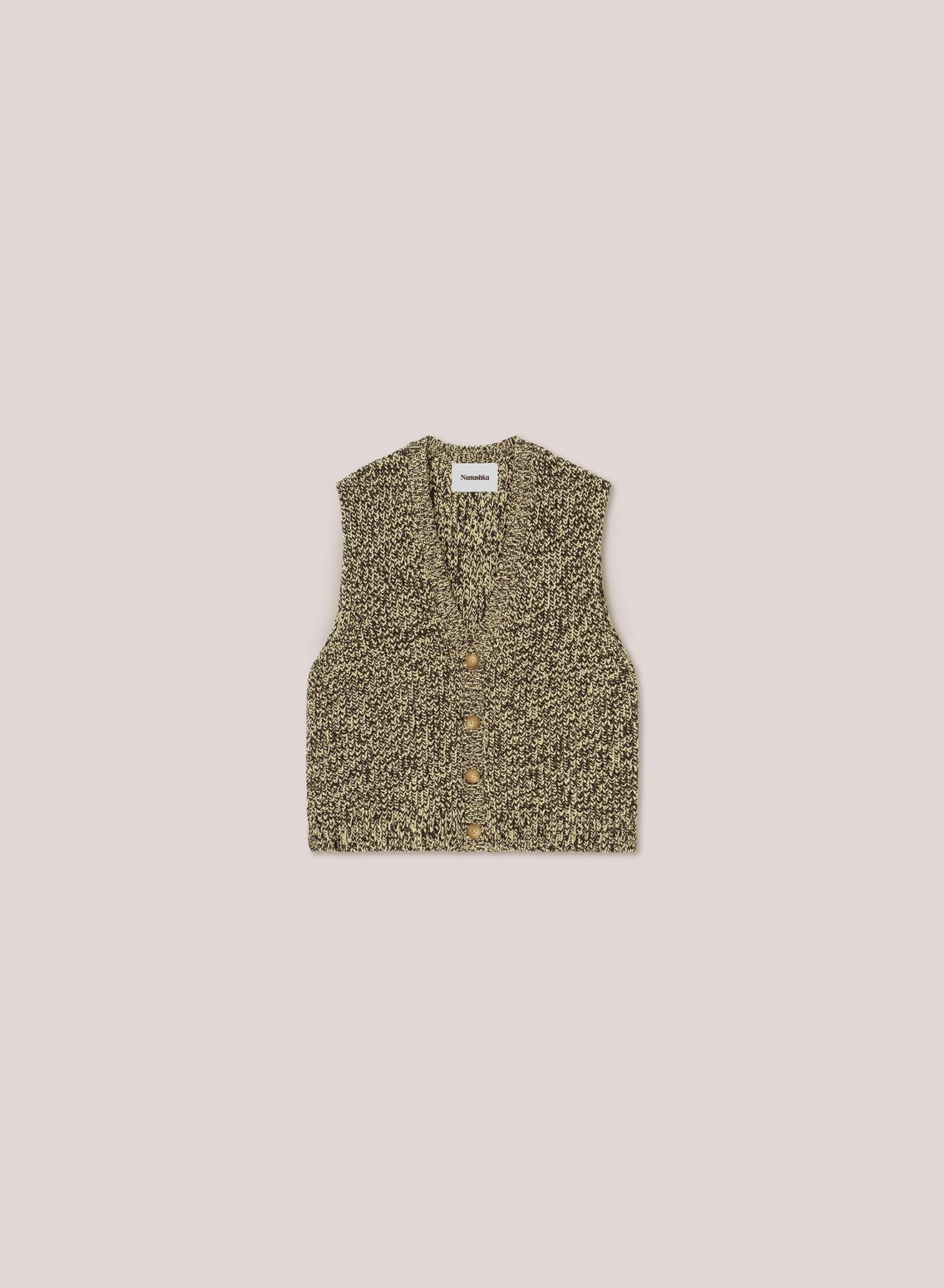 Nanushka consistently explores thoughtful fabrications that create a textural clash. The Dolan Vest is made from mouliné - similar to mélange, it combines fibers dyed in different colors, but with clear distinction, for a clear play on color. It has a button-front V-neck for comfortable layering and it's made with a mid-weight fabric. This unisex style can be worn on its own or layered as part of your final look.