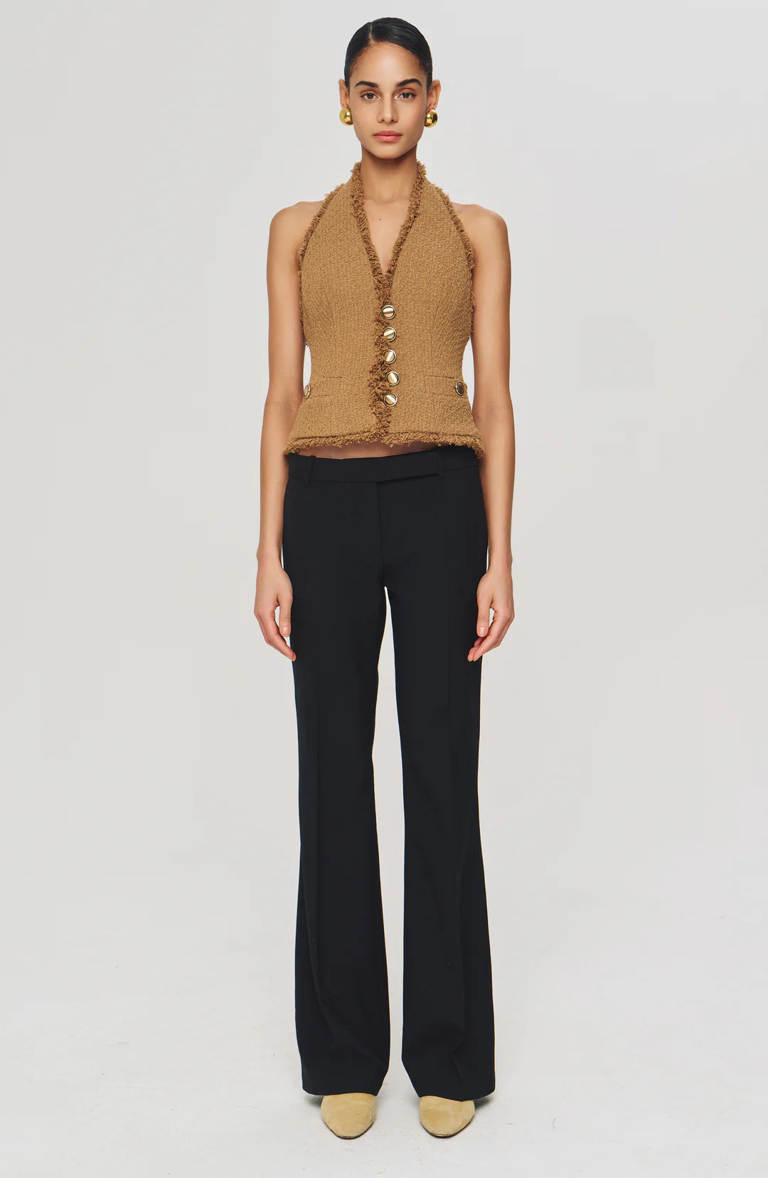 Tailored in rich mocha tweed, this vest features sharp lapels and a fitted silhouette. A streamlined design and precise detailing create a refined yet contemporary look.