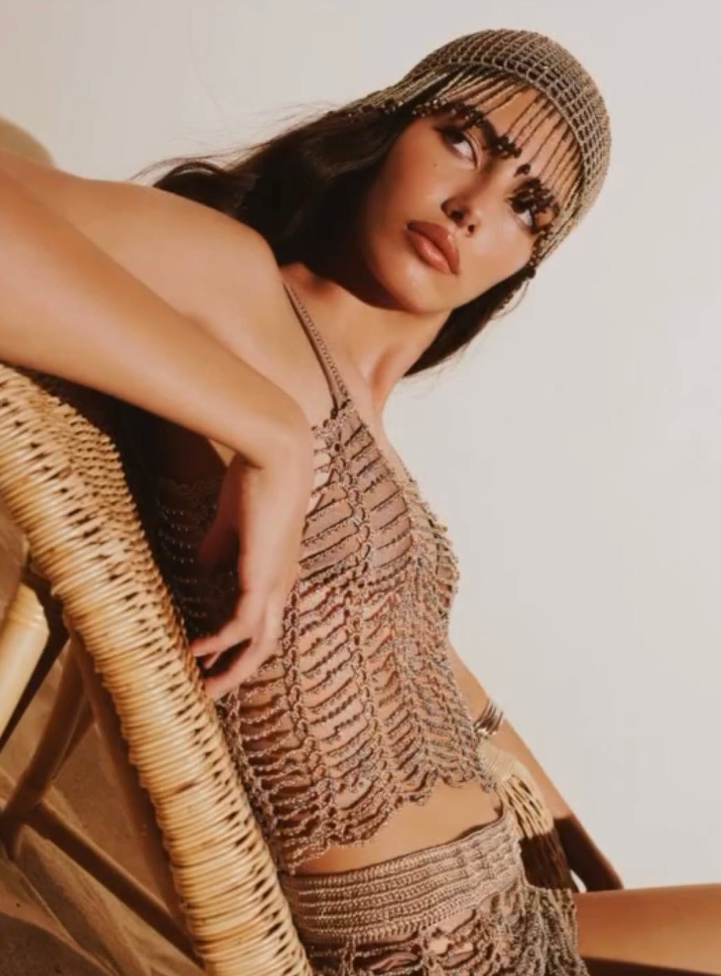 A classic silhouette with unexpected detail. This hand-crocheted beanie is finished with delicate beads that hang softly from the stitching, adding movement and subtle shine. Lightweight and breathable, it’s perfect for summer looks, adding a playful edge to outfits.